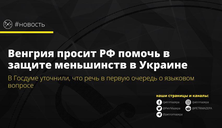 Парламент Венгрии обратился к Госдуме страны-агрессора с предложением объединить усилия, чтобы «защитить права языковых меньшинств» в Украине. Недовольство соседей связано с некоторыми положениями «языкового закона», принятого весной текущего года.