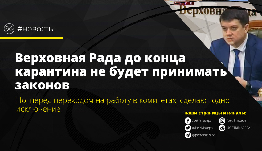Об этом сообщил во время согласительного совета Верховной Рады председатель парламента Дмитрий Разумков. Но и тут не обойдется без исключений - в ближайшее время планируют провести внеочередное заседание Верховной Рады, чтобы рассмотреть «антикороновирусный» законопроект – перечень изменений, которые должны помочь различным ветвям власти в борьбе с коронавирусом. Сделать это планируют уже завтра утром.