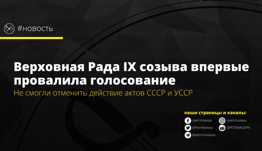 Верховная Рада IX созыва отметилась первым проваленным голосованием. Депутаты не поддержали законопроект №1075 об отмене действия актов СССР и УССР на территории Украины.
