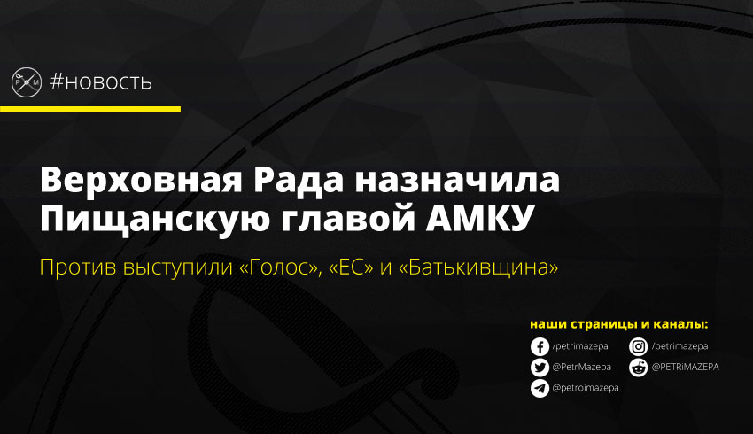Верховная Рада поддержала проект постановления о назначении на должность главы АМКУ Ольги Пищанской.
