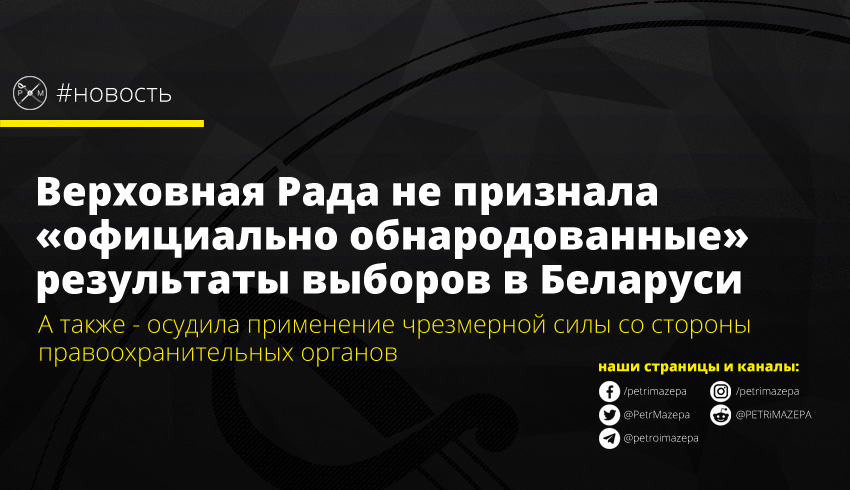 Верховная Рада не признала «официально обнародованные» результаты выборов в Беларуси