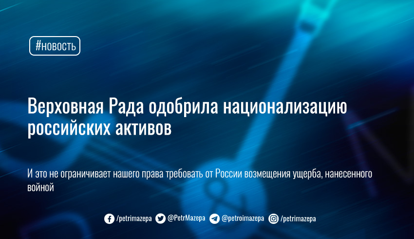 Верховная Рада сегодня, 3 марта, приняла законопроект №7122 про национализацию в Украине имущества и денег юридических лиц из России.