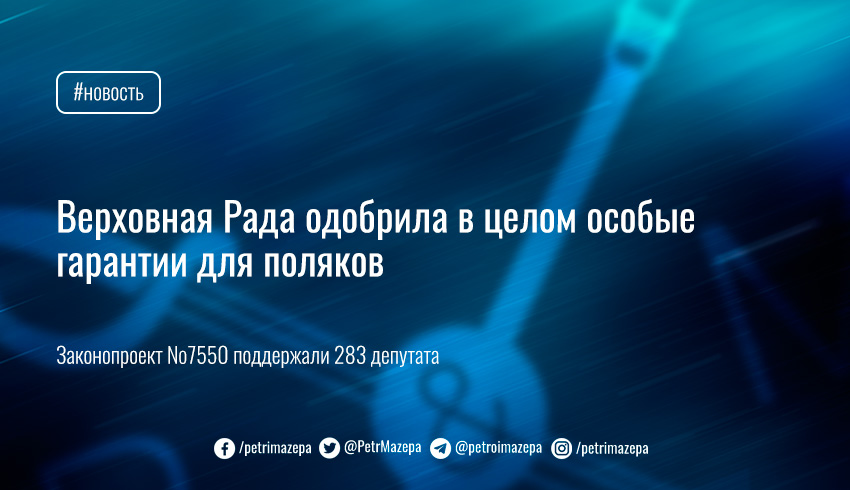 Верховная Рада сегодня, 28 июля, проголосовала в целом за особые гарантии для граждан Польши, которые законно находятся в Украине, сообщил депутат «Голосу» Ярослав Железняк.