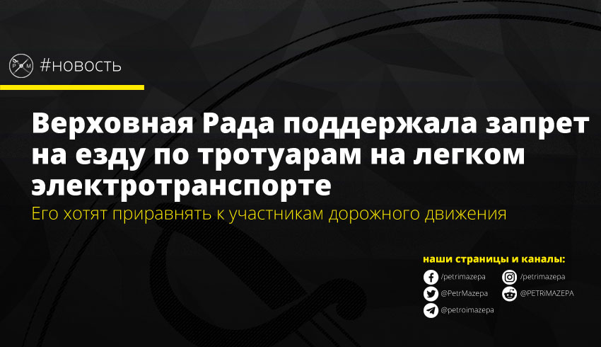 Верховная рада поддержала в первом чтении законопроект о легком электротранспорте – его предлагается законодательно отнести к участникам дорожного движения. Владельцев персонального электротранспорта хотят обязать передвигаться по дорогам и велодорожкам, иметь фонари, не пользоваться во время движения средствами связи, держа их в руке и не передвигаться на электротранспорте в состоянии алкогольного опьянения.
