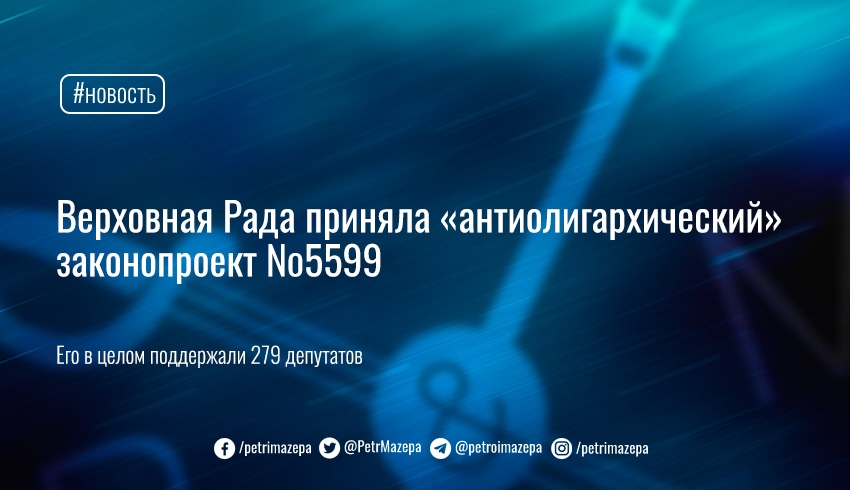 Верховная Рада сегодня, 23 сентября, приняла в целом так называемый законопроект о деолигархизации (№5599).