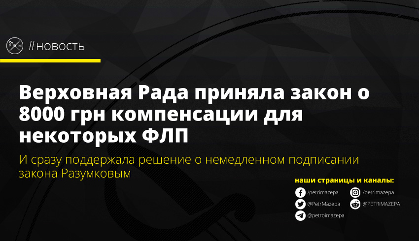 Верховная Рада приняла закон о 8000 грн компенсации для некоторых ФЛП