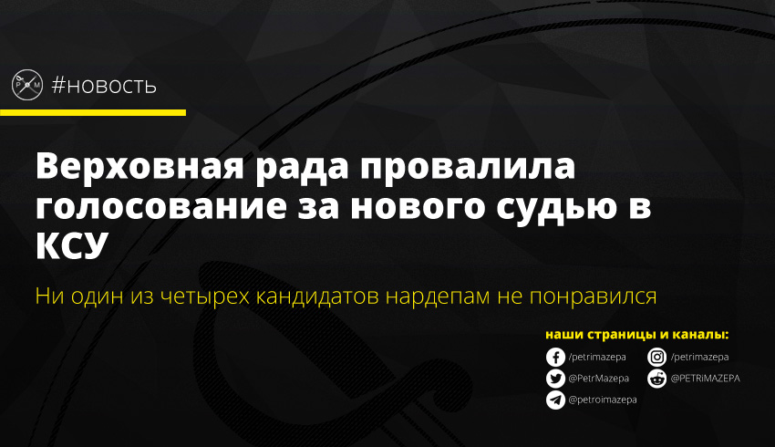 Верховная Рада не назначила на вакантную должность судьи Конституционного суда Украины (КСУ) ни одного из четырех претендентов. Назначение второго судьи будет рассматриваться позже.