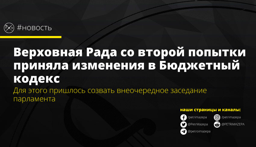 Верховная Рада со второй попытки смогла принять изменения в Бюджетный кодекс Украины – для этого было созвано отдельное внеочередное заседание парламента, где законопроект был единственным в повестке дня.