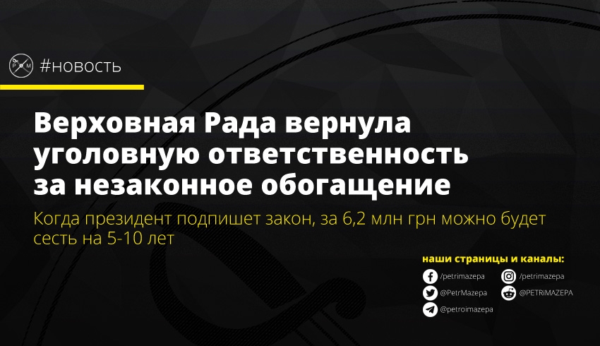 Верховная Рада вернула уголовную ответственность за незаконное обогащение