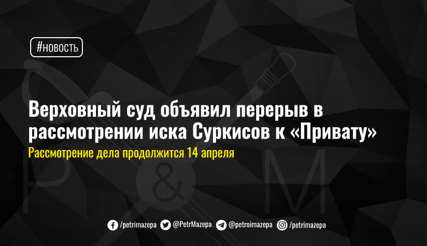 - 11 марта «ПриватБанк» обратился в Верховный суд с ходатайством о предоставлении возможности представителям банка принять участие в судебном заседании по иску Суркисов.