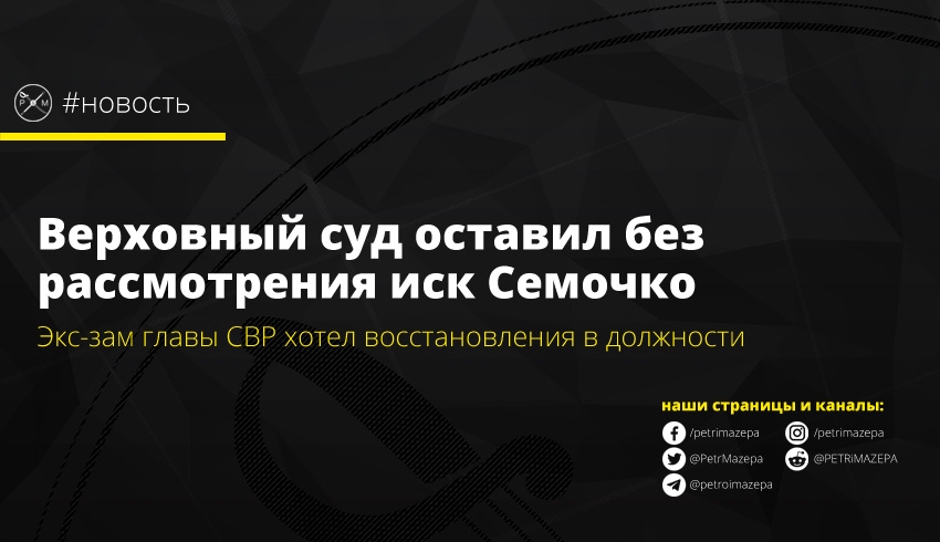 Семочко в судебном порядке хотел признания противоправным указа президента от 12 апреля 2019 года №143/2019, касательно его увольнении с должности в СВР. Экс-заместитель СВР просил восстановить его в этой должности, сообщает пресс-центр Верховного суда.
