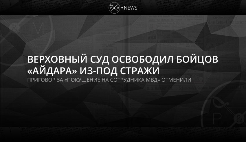 Верховный суд Украины освободил из-под стражи трех добровольцев батальона «Айдар», отменил приговор и вернул дело на рассмотрение в суд первой инстанции. Они были осуждены на 8 лет за нападение на сотрудника МВД и разбой, после задержания на передовой подозрительного человека со снимками позиций батальона.