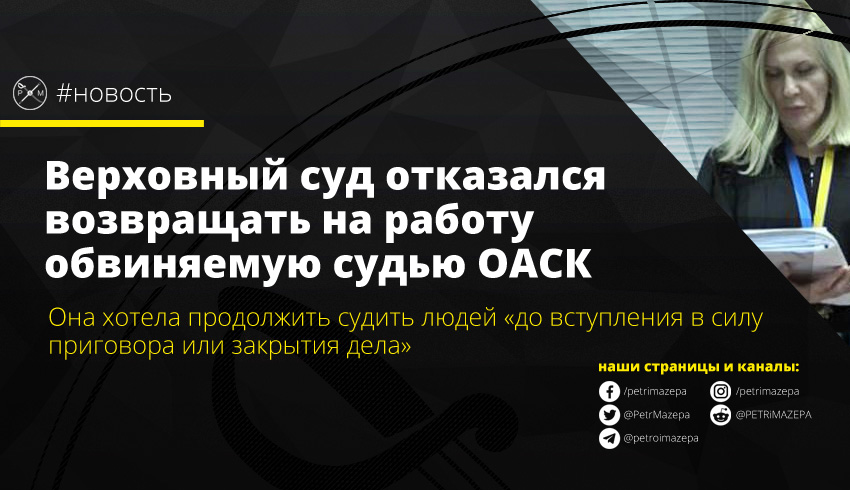 Верховный суд отказался возвращать на работу обвиняемую судью ОАСК