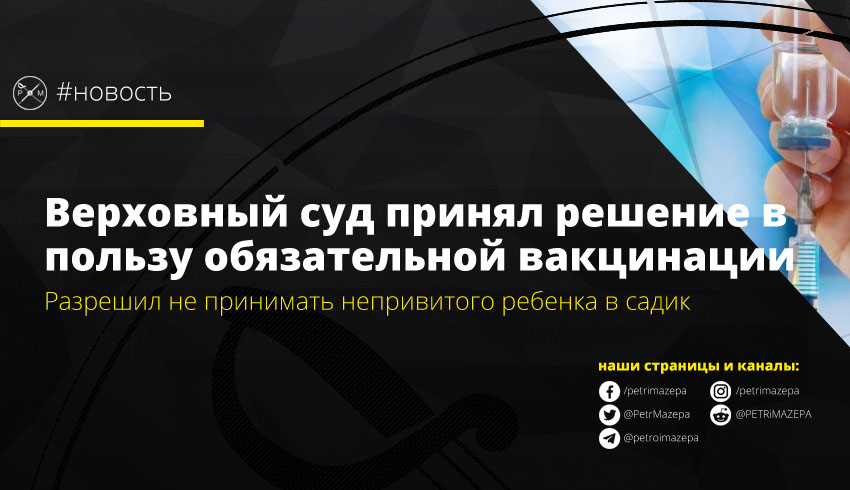 Верховный суд Украины принял решение по делу о запрете непривитому ребенку посещать детский сад. Суд постановил, что в данном случае превалирует принцип важности общественных интересов над личными, а решение матери отказаться от прививок противопоставляется правам других детей и их родителей. Поэтому право ребенка на дошкольное образование до получения прививки может быть ограничено.