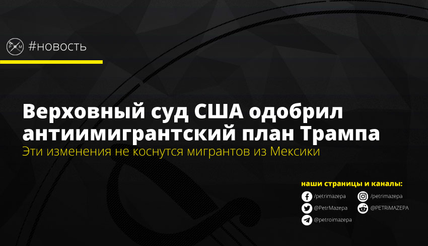 Верховный суд США одобрил планы президента Дональда Трампа по серьезному ограничению возможности просить убежища для мигрантов. Новые правила не коснутся мигрантов из Мексики, которые пытаются проникнуть через южную границу США – они направлены в основном на жителей Центральной Америки, которые на пути в США проходят через другие страны.