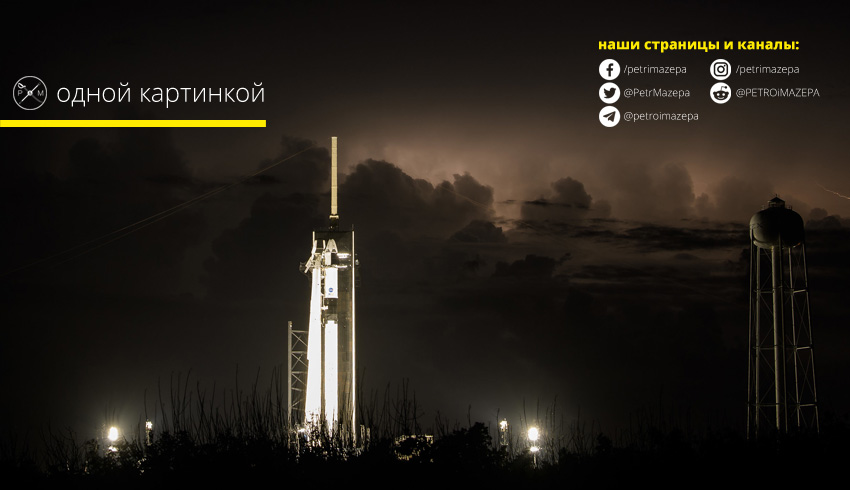 По данным 45th Space Wing ВВС США в районе запуска первой частной ракеты с частным космическим кораблем, который должен доставить астронавтов на МКС, есть 50% вероятности переноса старта из-за погоды. Сегодня старт запланирован на 3:22 p.m. EDT (22:22 по киевскому времени). В NASA пока не отменяют запуск и продолжают следить за погодой. Попутно радуя фанатов красивыми снимками ракеты на фоне непогоды. Если сегодня старт не состоится – его попробуют провести завтра, 31 мая, в 3:00 p.m. EDT (22:00 по киевскому времени).