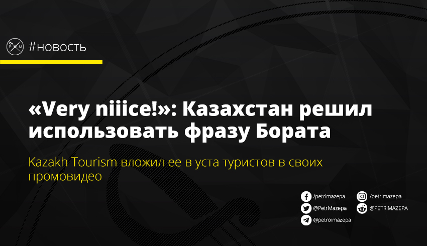 Компания Kazakh Tоurism, которая занимается продвижением туристического бренда Казахстана за рубежом, использовала в своих промороликах фразу Бората «Very niiice».