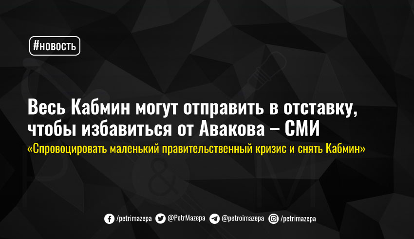 Также отмечается, что и в правительстве идут разговоры что осенью «могут спровоцировать маленький правительственный кризис и снять Кабмин». При этом отставка всего Кабмина является наиболее реальным сценарием для увольнения Арсена Авакова. По данным источников издания, от него давно хотят избавиться, но это сделать непросто, в первую очередь потому что у него есть компромат на все политсилы в стране, а во-вторую – потому что у него серьезное лобби в парламенте. Авакова также поддерживают и старые элиты, в том числе представители большого бизнеса.