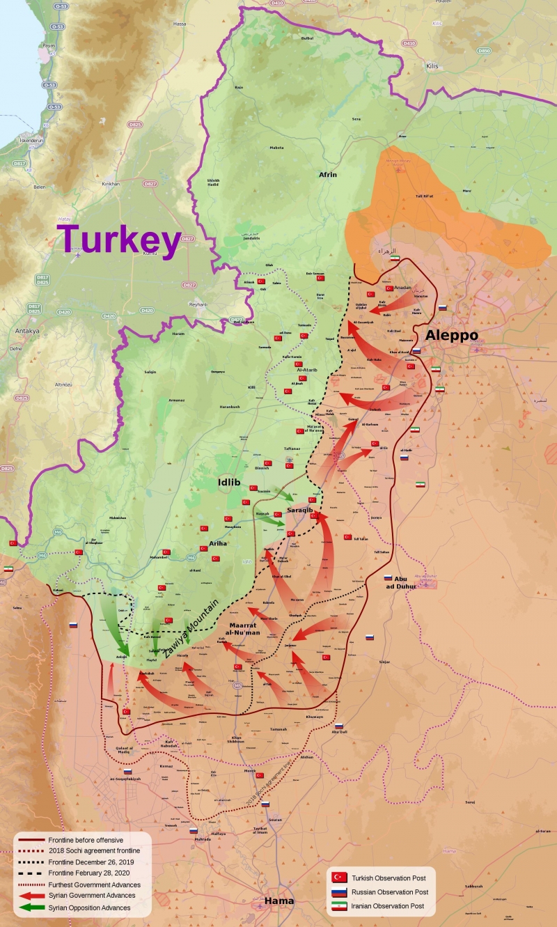 Ну и плюс Анкара ментально воспринимает эти земли своими. И Идлиб, и Алеппо — это незаконно отторгнутые в результате Первой мировой земли Османской империи, когда Франция с Британией нарисовали границу толстым карандашом по мелкому глобусу. Если вы думаете, что для турок это неважно, то стоит вспомнить, что они воевали с союзником по НАТО за Кипр, который они считают турецким. После чего Греция выходила из НАТО, охапками закупая оружие из СССР — это в 1974 году на секундочку, в разгар Холодной войны, вот это поворот. И сейчас, когда турецкий контингент находится в Ливии, которая тоже была частью «османского мира», какие-то непонятные люди в Дамаске в нарушение договоров начали наступление в Идлибе, планируя повесить на бюджет Турецкой республики ещё миллион ртов. Непонятные, ибо выборы 2014 года признали в основном такие демократические страны, как Иран, КНДР и Куба. США, ЕС и Турция считают эти выборы нелегитимными. А ещё эти непонятные люди, на штыках Ирана и России, кстати, десятки раз обещали зелёную зону и полосу деэскалации на севере. Обещали в Сочи. Обещали в Астане. Обещали на сотнях консультаций и переговоров. Каждому полевому командиру, которых автобусами эвакуировали из окружённых анклавов. А потом кинули при первой возможности. Зная, что турецкие офицеры сейчас проливают кровь в Ливии, и помня о том, что Анкара запросто наносила удары по грекам — союзникам по НАТО, надо быть полным эльфом, чтобы поверить, что турки сглотнут подобный подход к дипломатии. Поэтому падают горящие сирийские самолёты, прилетают прямо с территории Турции 300-мм реактивные снаряды и под две сотни тяжёлой техники поражено с подтверждением видео.