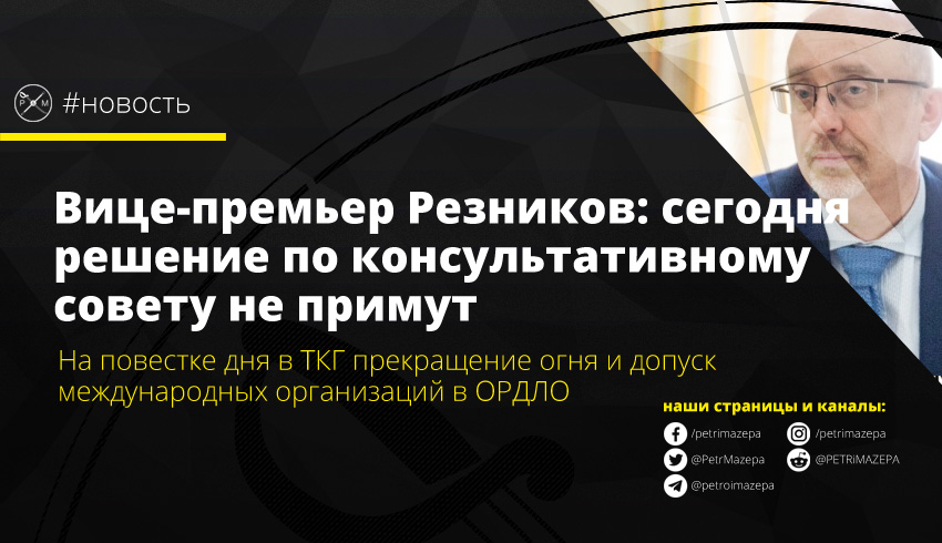 Из-за карантина встречи проходят в формате видеоконференции. Также, до того, как вернуться обсуждению вопрос о консультативном совете при ТКГ, его необходимо согласовать с Германией, Францией и ОБСЕ. И этот этап согласования все еще продолжается, сказал Резников.