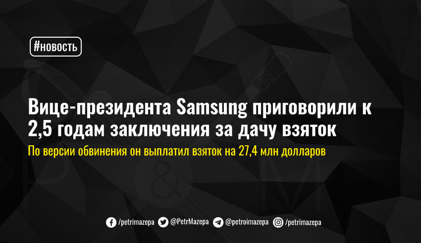 Вице-президента Samsung приговорили к 2,5 годам заключения за дачу взяток