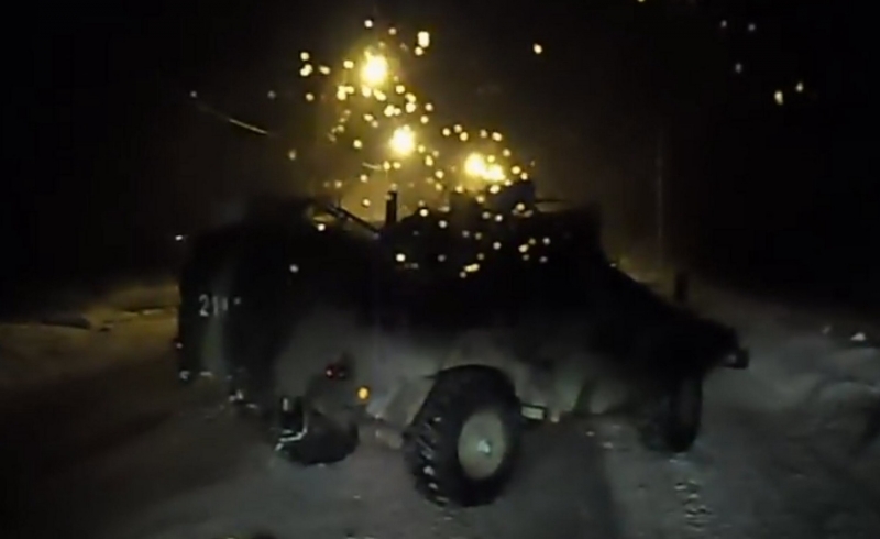 Далее на ночном видео наёмники «Вагнера» проезжают мимо модифицированного бронеавтомобиля «Выстрел», который используют исключительно российские пограничники. Машина имеет бортовой номер 211.