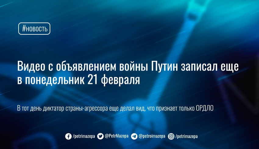 Видео с объявлением войны Путин записал еще в понедельник 21 февраля