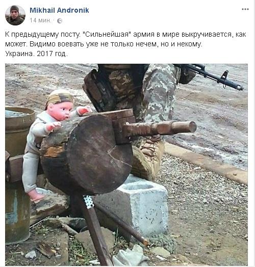 В 2017 году по ту сторону фронта в окопе сидит не «потерявшийся» срочник образца лета 2014-го, а вполне себе обученный, мотивированный, упорный, неглупый солдат. Которым руководит такой же офицер, вполне знающий свое дело.