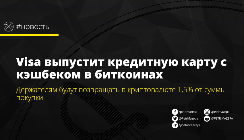 Visa выпустит кредитную карту с кэшбеком в биткоинах