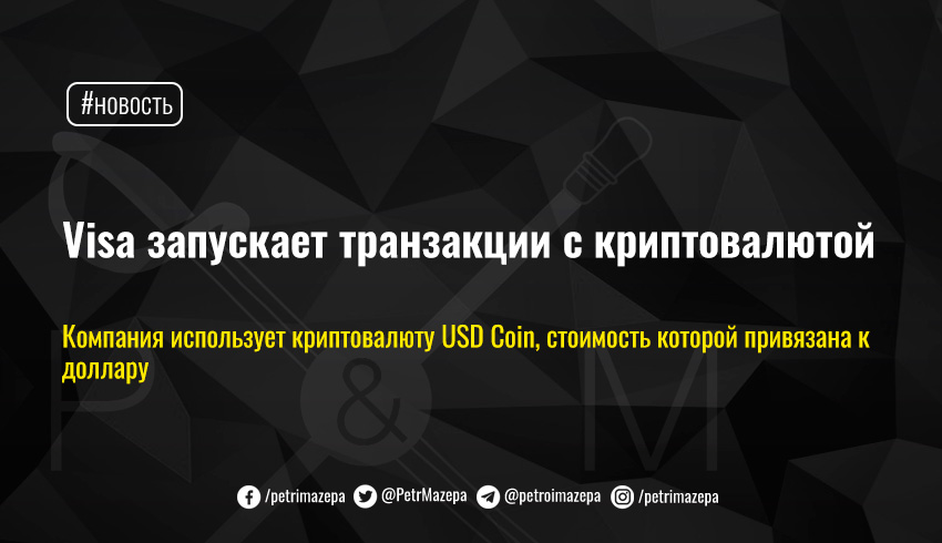 Компания Visa впервые в своей истории провела транзакцию с криптовалютой.