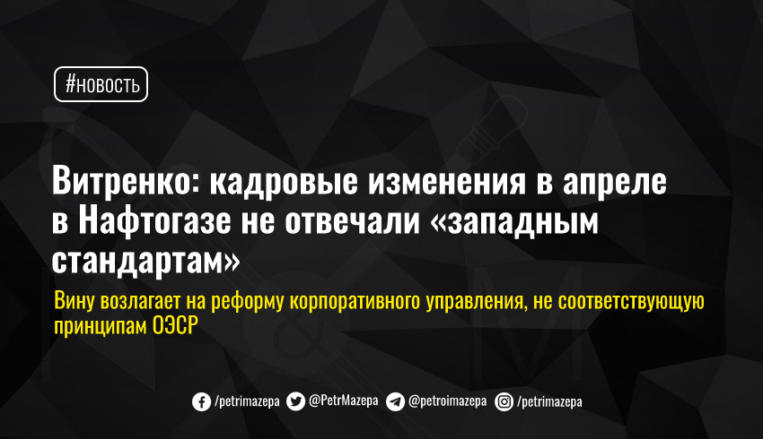Витренко: кадровые изменения в апреле в Нафтогазе не отвечали «западным стандартам»