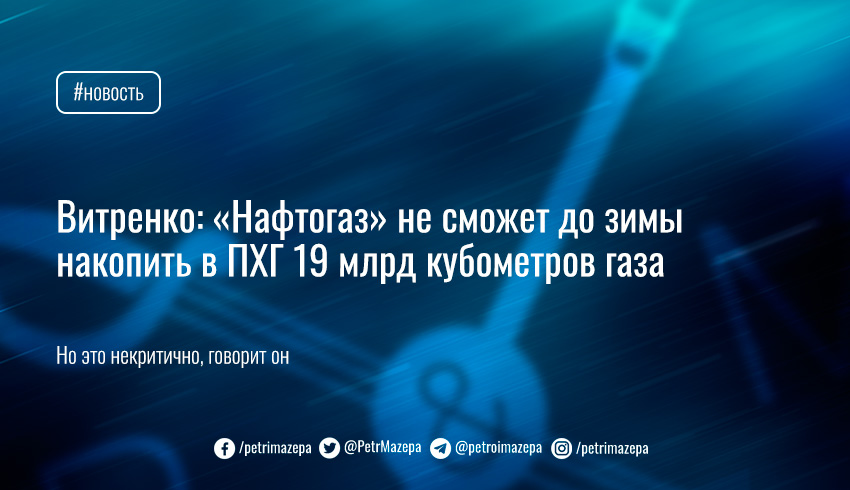 Витренко: «Нафтогаз» не сможет до зимы накопить в ПХГ 19 млрд кубометров газа