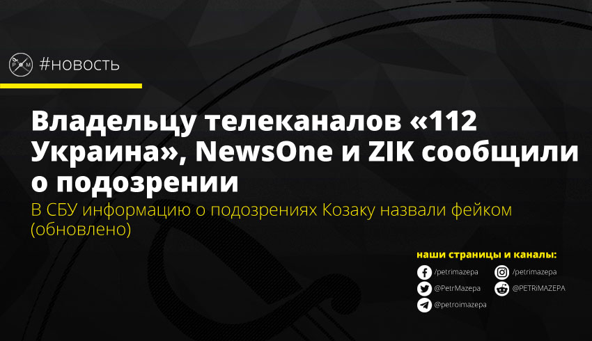 Владельцу телеканалов «112 Украина», NewsOne и ZIK сообщили о подозрении