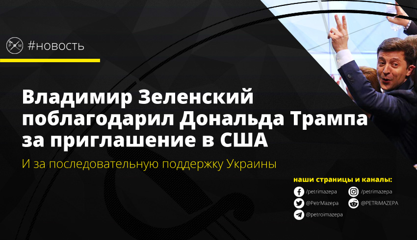 Пресс-служба президента Украины опубликовала сообщение, в котором Владимир Зеленский благодарит президента США Дональда Трампа за приглашение совершить официальный визит в Вашингтон и за поддержку Украины.