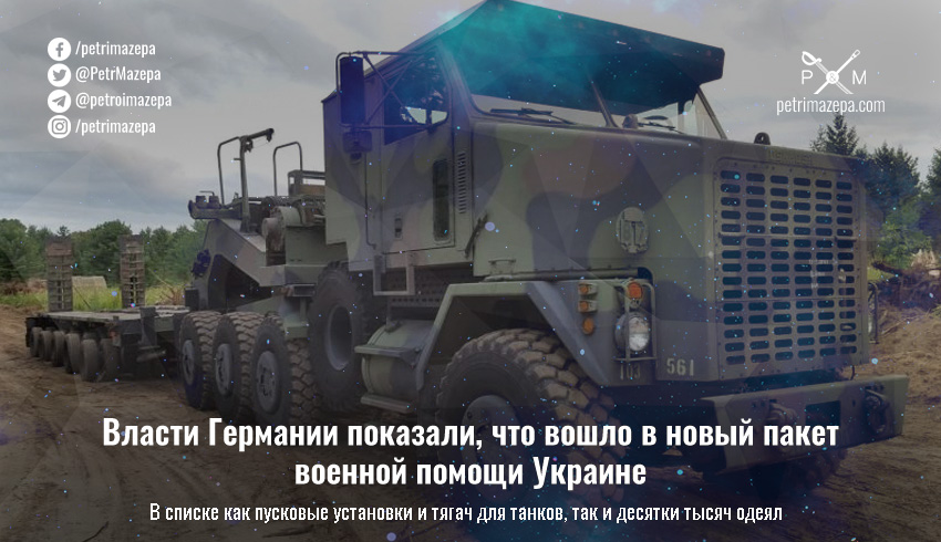 Федеральное правительство Германии обнародовало список вошедшего в новый пакет военной помощи для Украины. В список вошли как грузовики, так и разведывательные дроны, генераторы, системы отопления и карета скорой помощи.