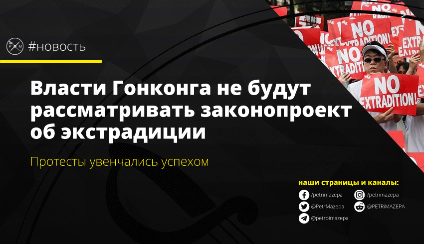 Власти Гонконга не будут рассматривать законопроект об экстрадиции