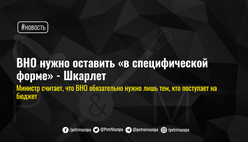 «Для тех, кто поступает на бюджет, ВНО нужно точно. А те, кто планирует учиться на платной основе, на контракте, могут сдавать это ВНО в виде теста на способность к обучению», - сказал Шкарлет.