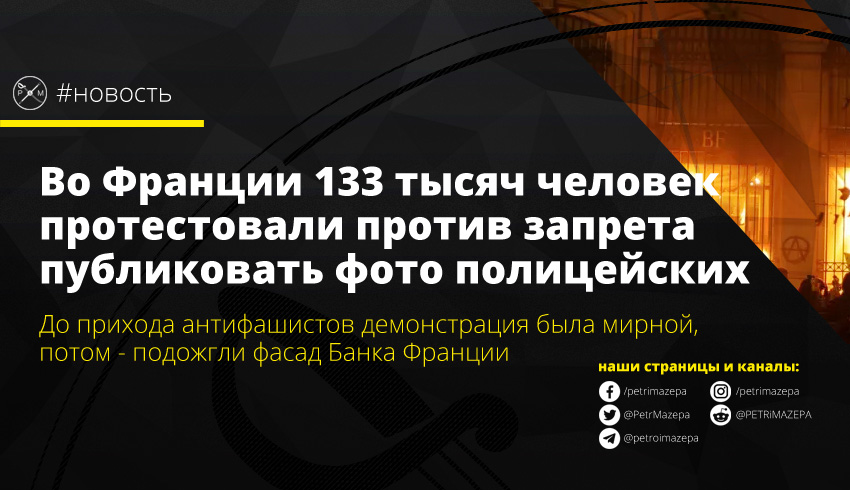 • 17 ноября в Париже и ряде других французских городов также прошли массовые протесты против законопроекта «о глобальной безопасности». Им предлагается запретить распространять фото или видео с правоохранителями, по которым их можно идентифицировать.