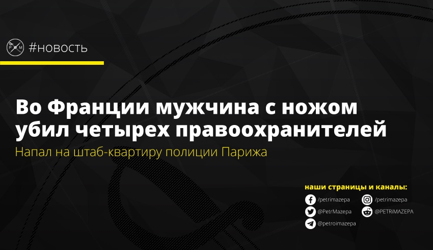 Во Франции мужчина, вооружившись ножом, напал на полицейских в Париже. Его жертвами стали четыре человека. Сотрудники правоохранительных органов застрелили нападающего. Что послужило мотивом для злоумышленника пока неизвестно.