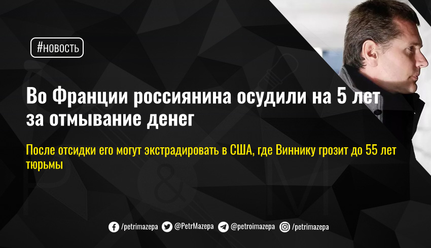 Исправительный суд Парижа 7 декабря огласил приговор по делу россиянина Александра Винника, обвиняемого в вымогательстве и отмывании денег в составе преступной группы. Он получил пять лет тюремного заключения и обязан выплатить штраф в размере 100 тысяч евро.