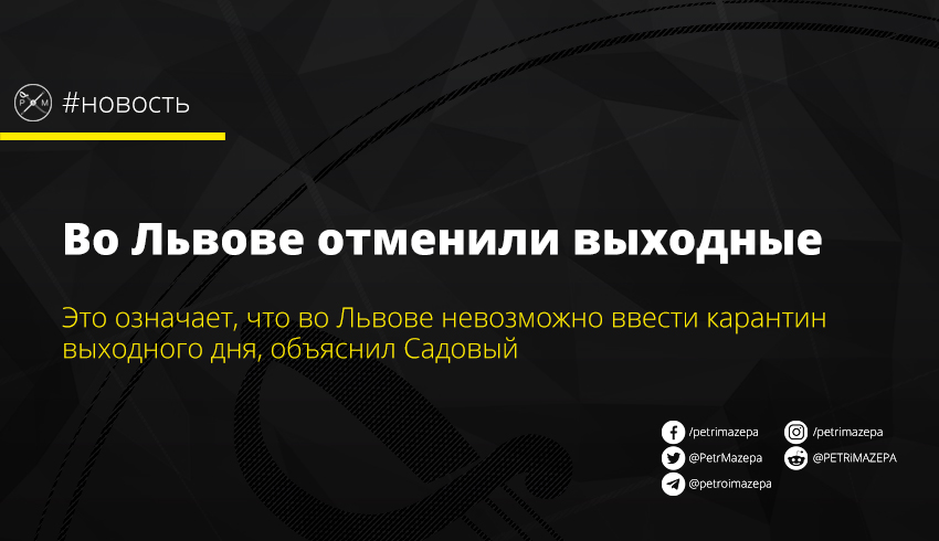 «Это означает, что во Львове невозможно ввести карантин выходного дня, у нас нет выходных. Люди имеют право на труд», - подчеркнул он.