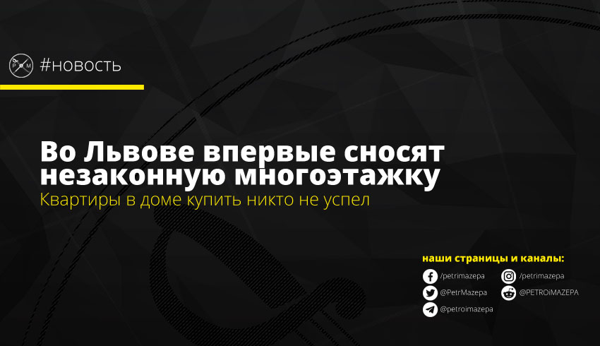 Во Львове впервые проводят демонтаж многоэтажного дома, построенного без документов. Работы по сносу объекта будут продолжаться до двух месяцев. Квартир в доме никто не купил, за защитой своих прав никто не обращался, а передать здание в коммунальную собственность невозможно по закону.