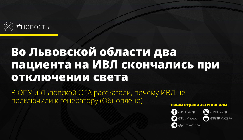 Во Львовской области два пациента на ИВЛ скончались при отключении света