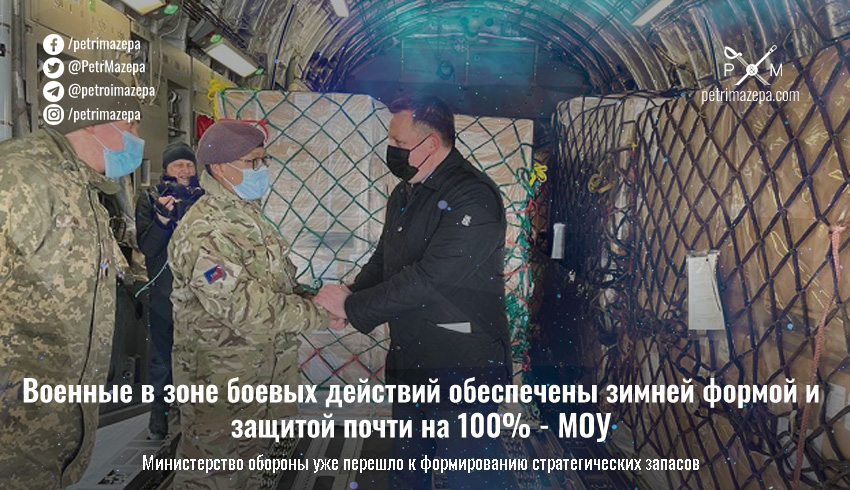 В ответ на вопрос, обеспечены ли наши военные достаточным количеством зимней одежды, Шаповалов сообщил, что «Да. Первоочередная потребность, а это, прежде всего, те люди, которые непосредственно находятся в зоне боевых действий, они обеспечены практически на 100%, но поставки идут каждый день — это достаточно большие объемы, и мы сейчас ведем работу практически «с колес». Все, что поступает на логистические склады ВСУ, практически сразу направляется командованием на обеспечение частей. Средствами защиты (шлемы, баллистические бронежилеты) сейчас мы обеспечили вооруженные силы полностью, весь личный состав, мы уже даже создали достаточно большие запасы. Сегодня мы уже перешли к созданию стратегических запасов».