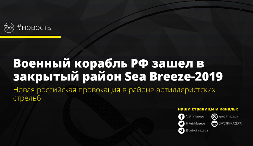 «Не обращая внимания на Прибрежное Сообщение для мореплавателей касательно закрытия района для проведения международных учений Sea Breeze 2019, корабль Черноморского флота РФ "Сметливый" около 8 часов утра 10.07.2019 зашел в закрытый для мореплавания район, где проводились практические стрельбы корабельной артиллерии морской группировки международной коалиции, провоцируя опасную ситуацию. Корабль Черноморского флота был допрошен фрегатом "Гетьман Сагайдачний" в соответствии с международным протоколом, однако сделал вид, что имеет “проблемы” со связью», - сообщает пресс-центр командования Военно-морских сил ВМС Украины.