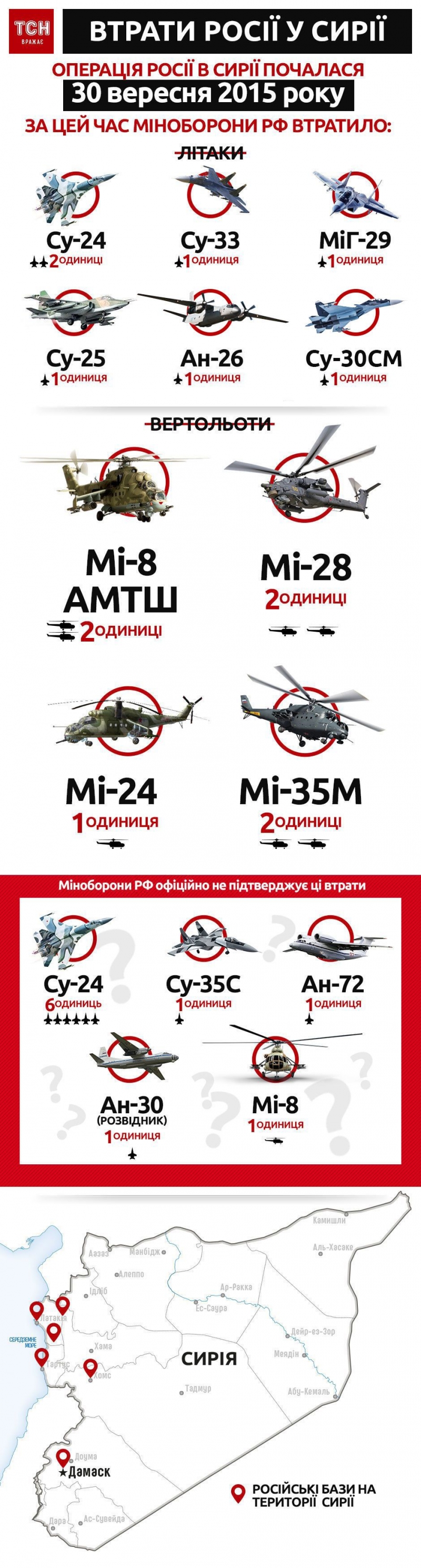 Инфографику по теме потерь военной авиации России в Сирии подготовили журналисты ТСН.