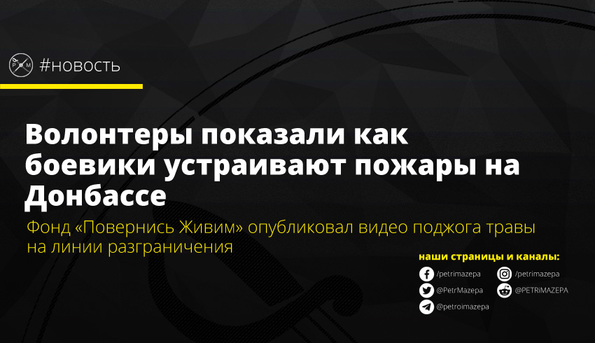 Благотворительный фонд «Повернись Живим» опубликовал видео, присланное военными, на котором видна деятельность террористов на Донбассе. Пророссийские боевики поджигают сухую траву на линии соприкосновения преимущественно в те дни, когда ветер дует в сторону украинских позиций.