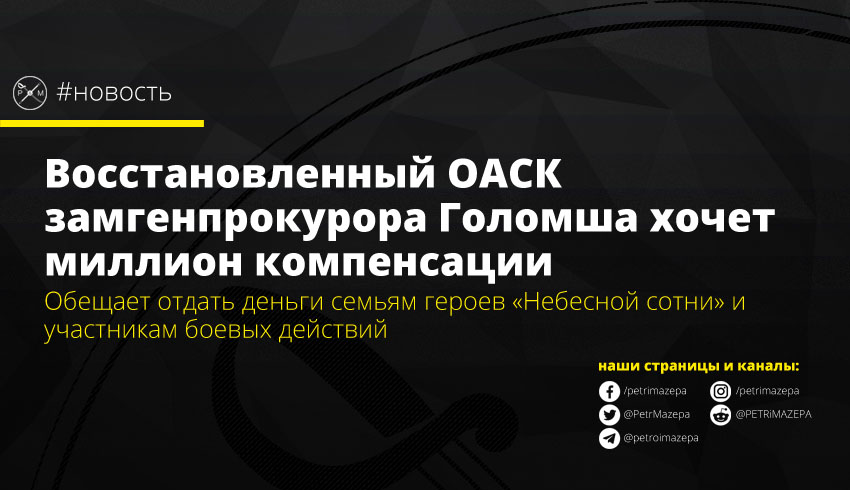Восстановленный ОАСК в должности замгенпрокурора Николай Голомша рассчитывает на возмещение как минимум 1 млн грн за незаконное увольнение. Средства он обещает передать семьям героев «Небесной сотни» и участникам боевых действий. Также он сообщил, что хочет вернуться на работу в ГПУ.