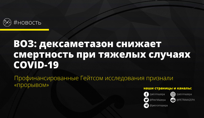 Команда исследователей под руководством ученых Оксфордского университета установила, что недорогой (около 12 грн за ампулу в интернет-аптеках – прим. ред.) и доступный стероид дексаметазон спас жизнь трети пациентов в случаях тяжелого течения коронавирусной инфекции COVID-19. Результаты исследований были обнародованы 16 июня, пишет «Радио Свобода».