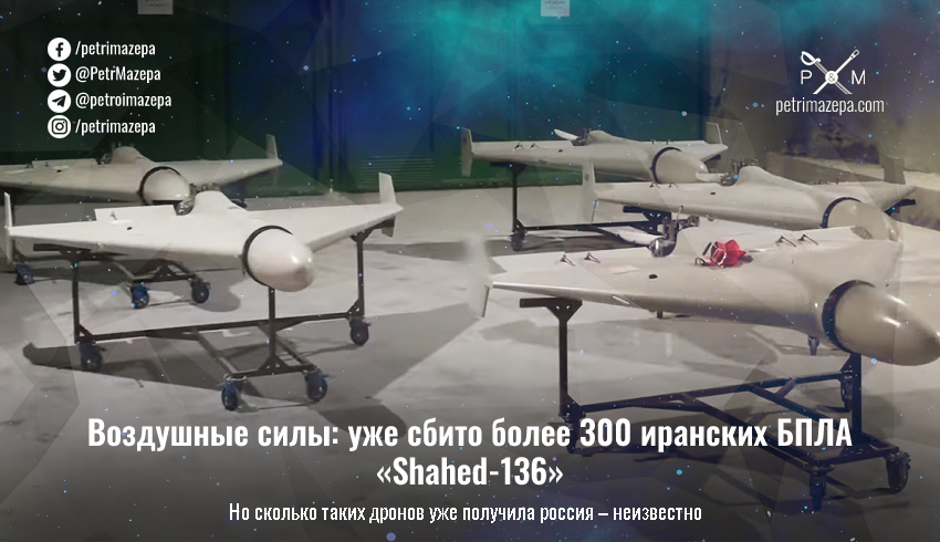 Сегодня спикер командования Воздушных сил ВСУ Юрий Игнат рассказал, что ВСУ сбили уже более 300 иранских дронов-камикадзе «Shahed-136». Также он напомнил, что сегодня ночью не было атак с применением этих дронов.